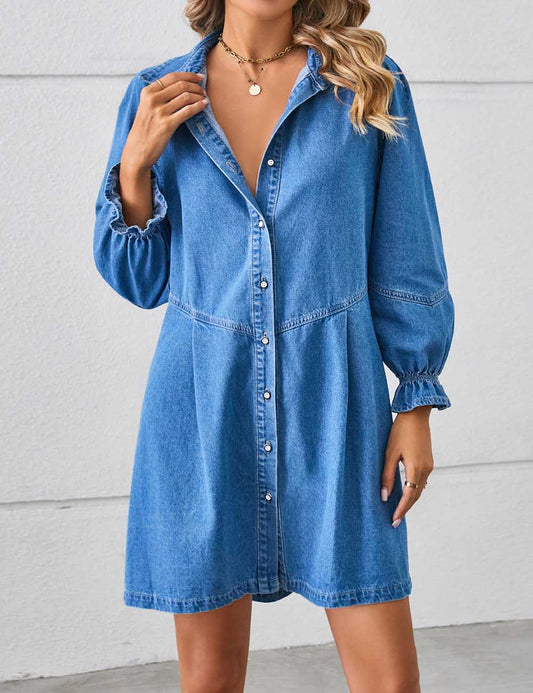 Solid Color Long Sleeve Shirt Wrap Hip Short Dress
