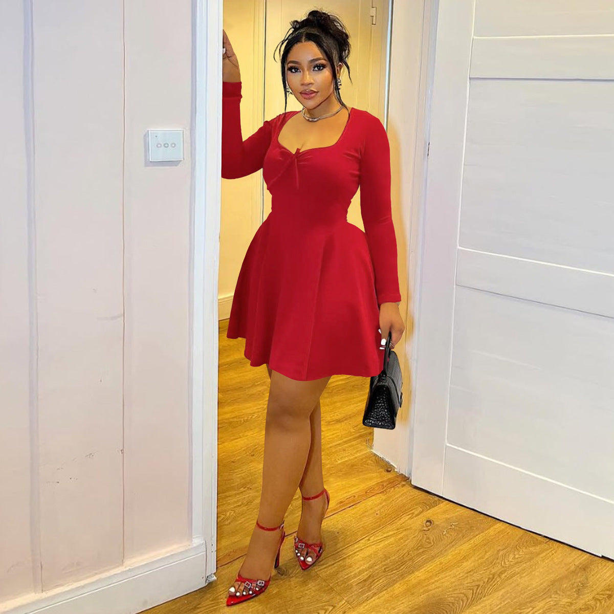 Vestido informal de vacaciones para mujer con cuello en V y manga larga
