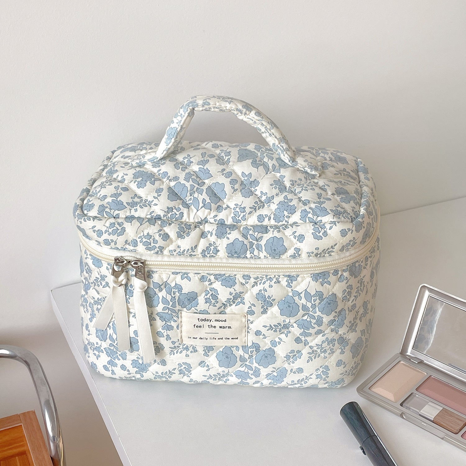 Blue Flower Simple Large Capacity Make Up Bag