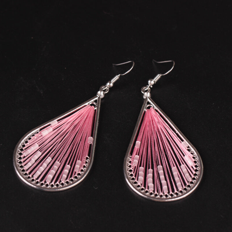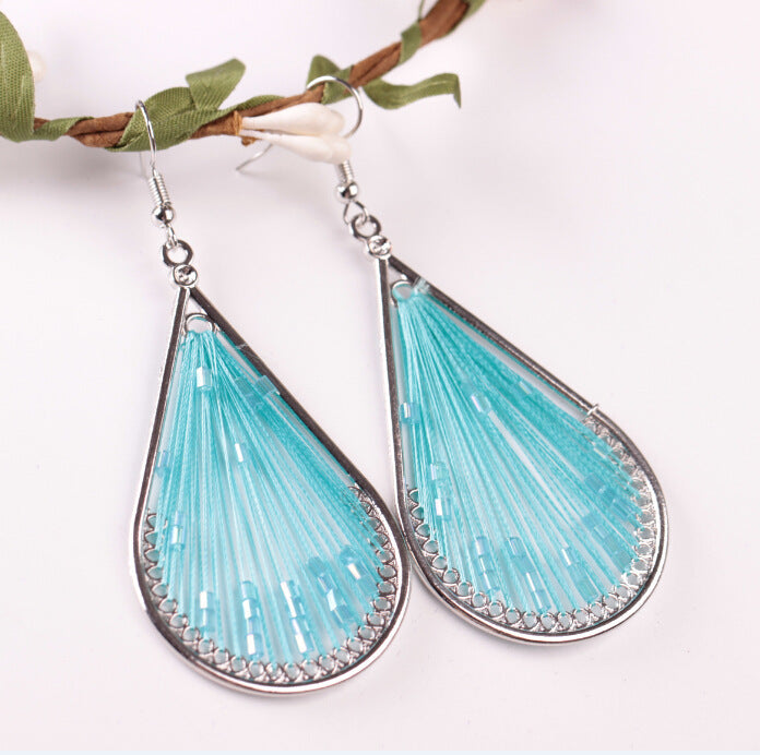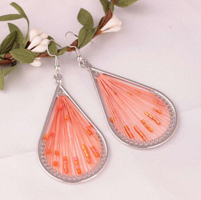 Realza tu estilo con nuestros aretes colgantes de cuentas bohemias con alambre fino trenzado. Esta impresionante joya bohemia presenta un diseño geométrico único, lo que la convierte en el accesorio perfecto para cualquier atuendo de inspiración bohemia.