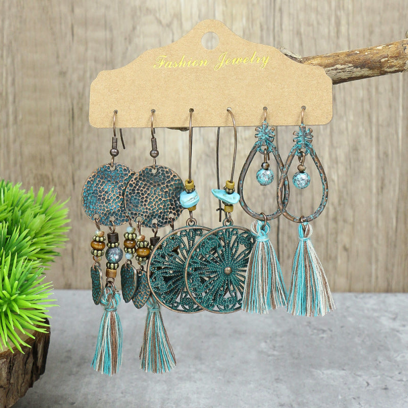 Conjunto de pendientes con borlas creativas retro de estilo étnico bohemio