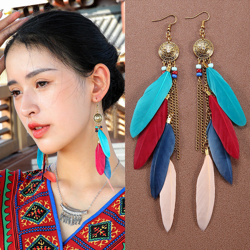 Pendientes de plumas con borlas retro de estilo étnico bohemio