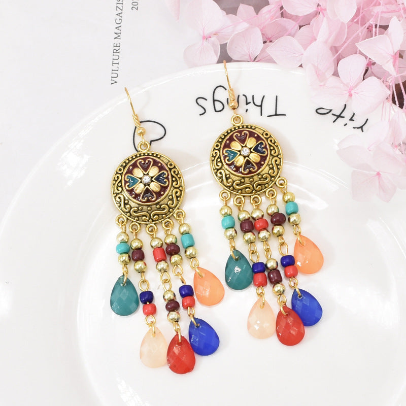 Pendientes con borlas y cuentas multicolores de flores bohemias