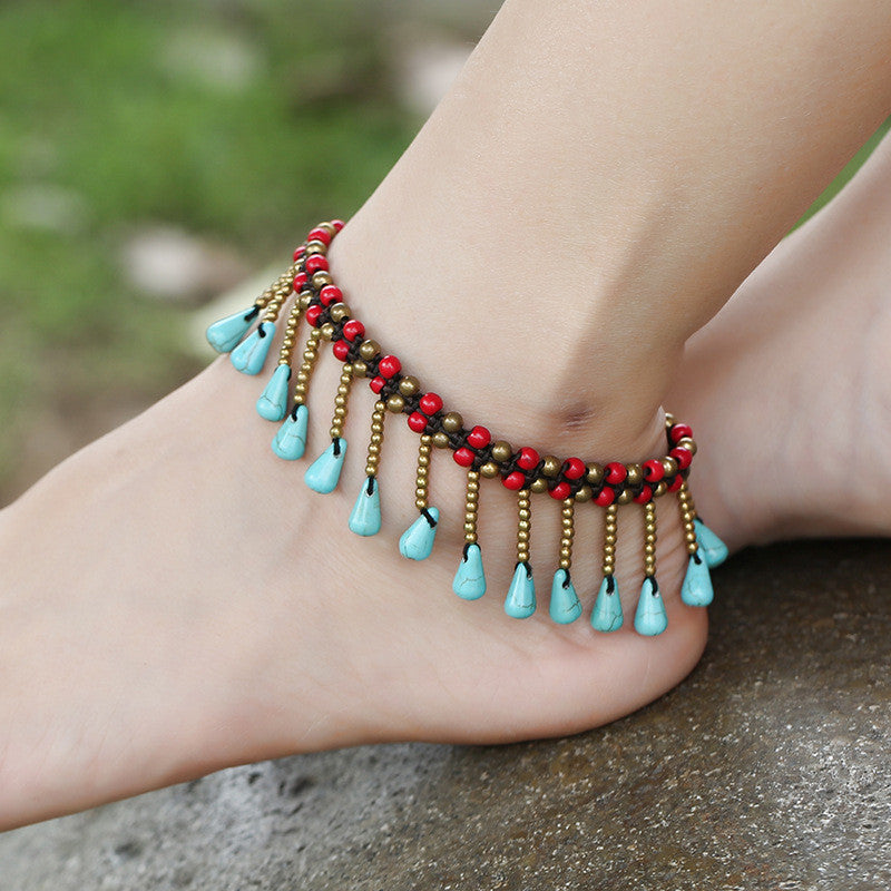 Tobillera bohemia con borlas trenzadas hechas a mano