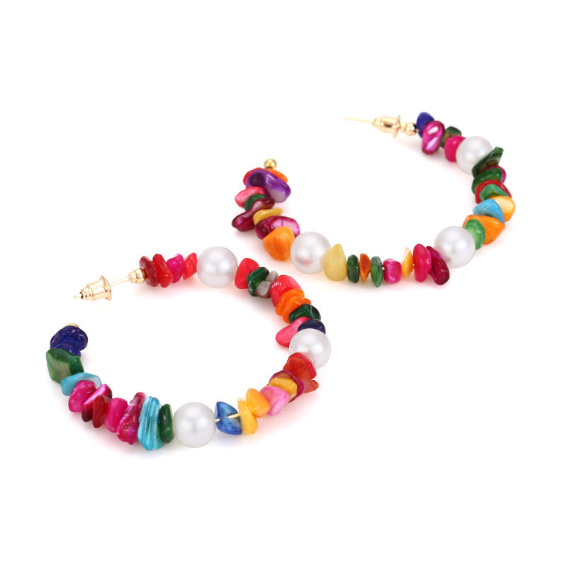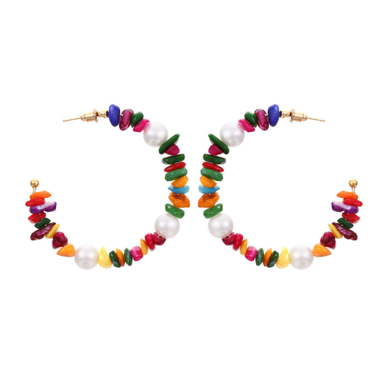 Realza tu colección de joyas con nuestros impresionantes aretes de perlas navideñas geométricas exageradas con grava multicolor bohemia. Perfectos para añadir un toque de elegancia y diversión, estos aretes presentan un diseño geométrico único, llamativo y elegante.