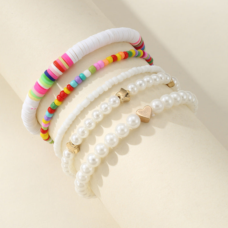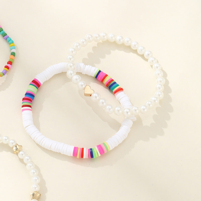 Juego de tobilleras con minicuentas multicolores de arcilla polimérica bohemia