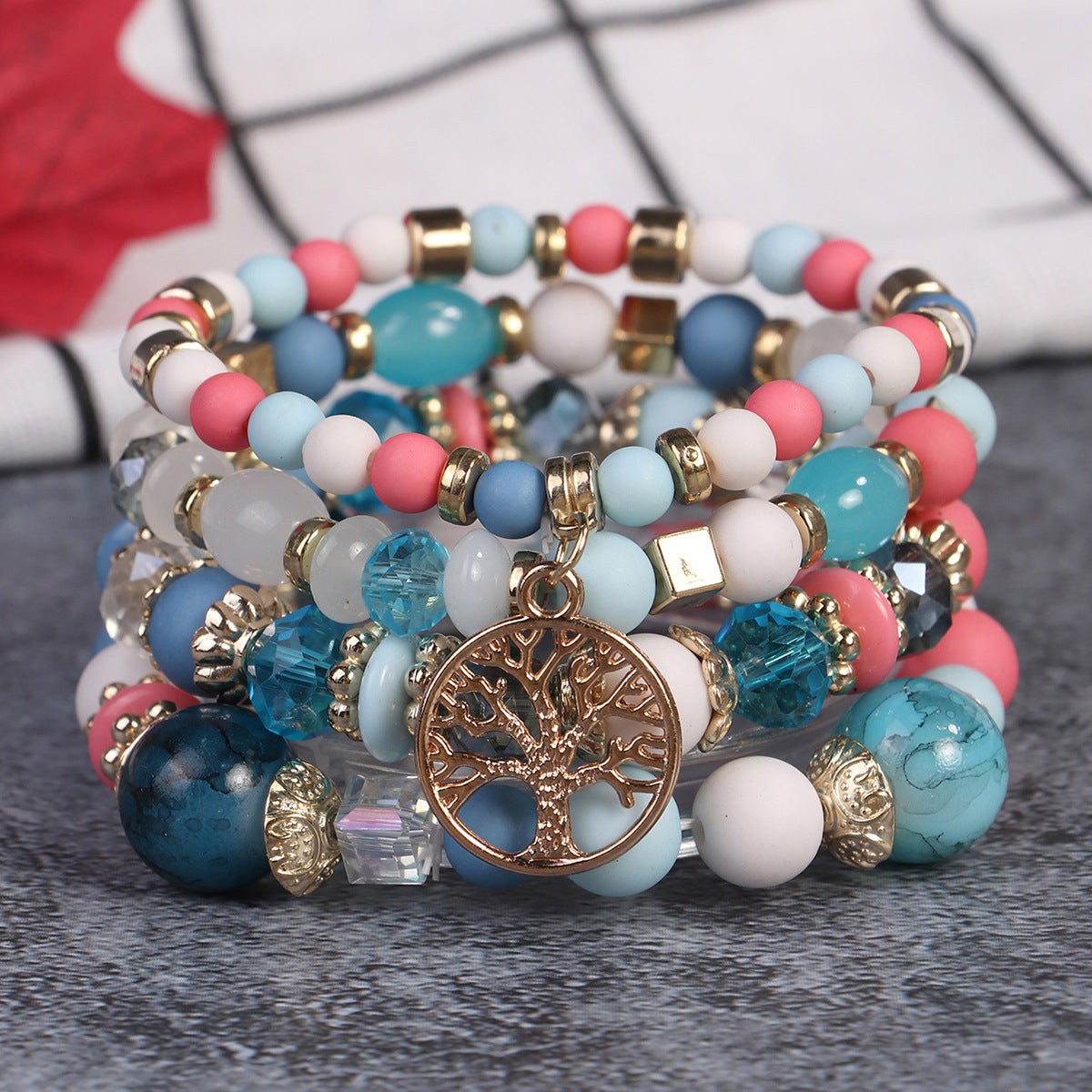 Conjunto de pulseras de cuentas multicapa estilo retro bohemio