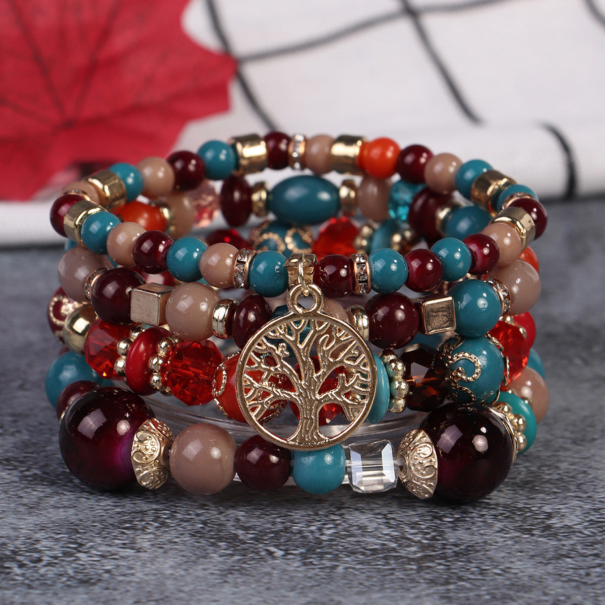 Adopta tu estilo único con nuestro conjunto de pulseras de cuentas multicapa estilo bohemio retro. Esta impresionante colección de joyería bohemia presenta colores vibrantes y diseños intrincados, perfectos para realzar cualquier atuendo.