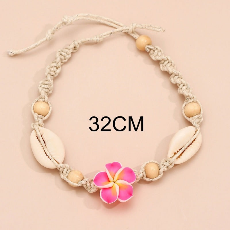 Tobillera con diseño floral de conchas tejidas a mano de estilo bohemio