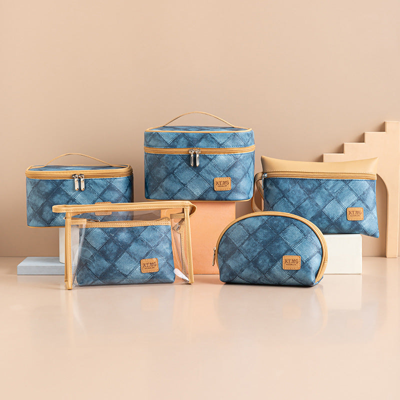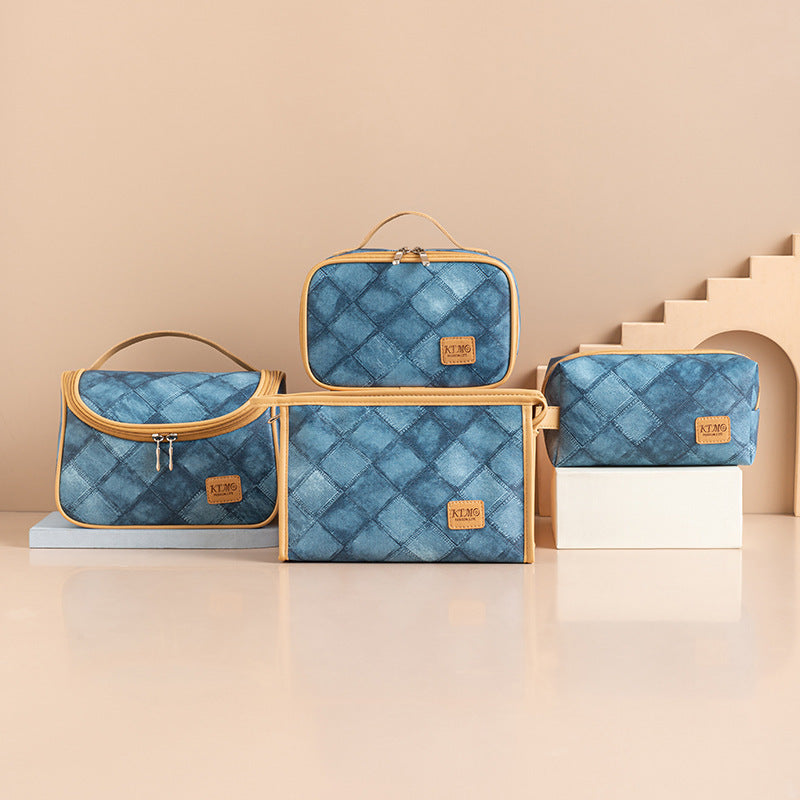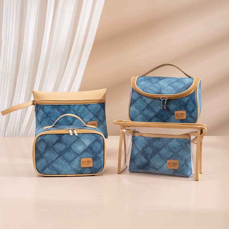 Bolsa de maquillaje y cosméticos con estampado de mezclilla