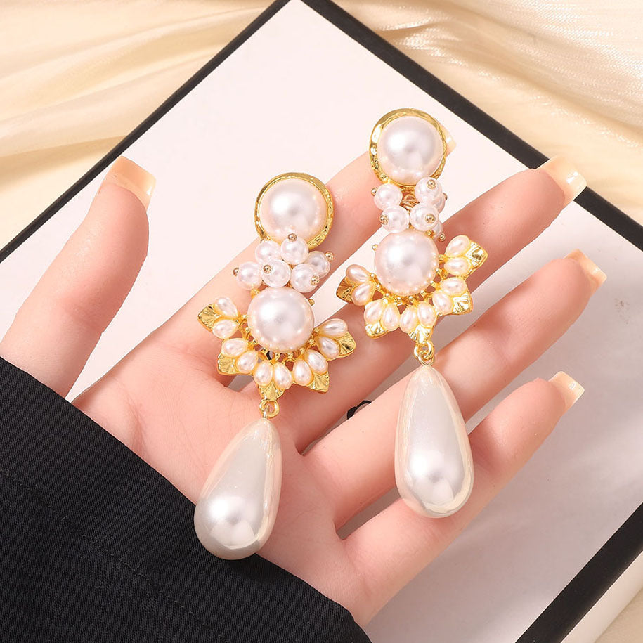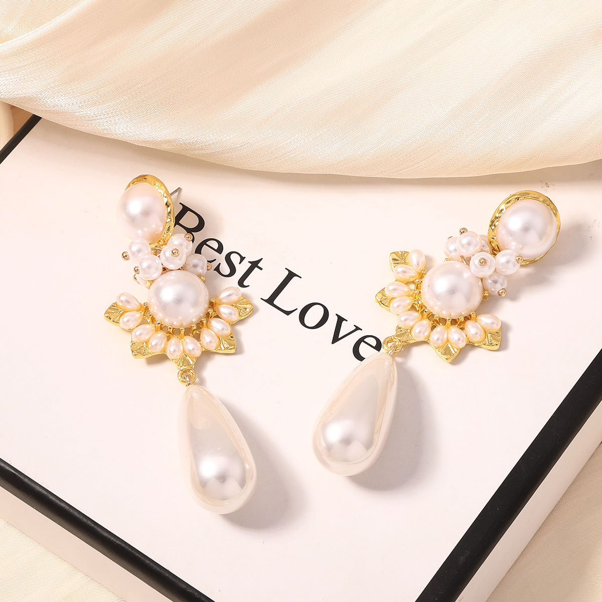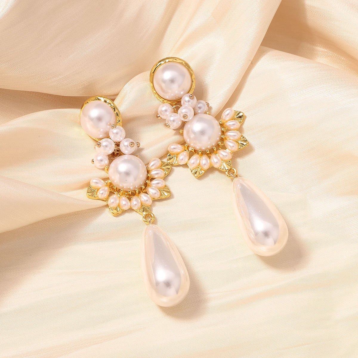 Elegantes pendientes colgantes con borlas de perlas de imitación