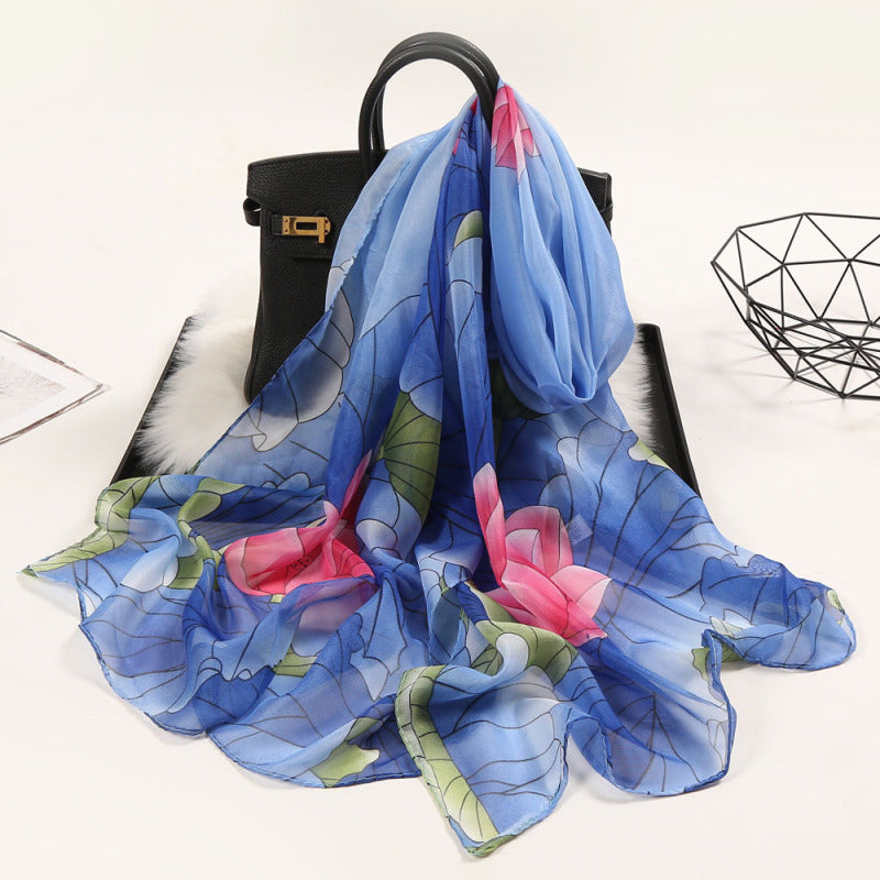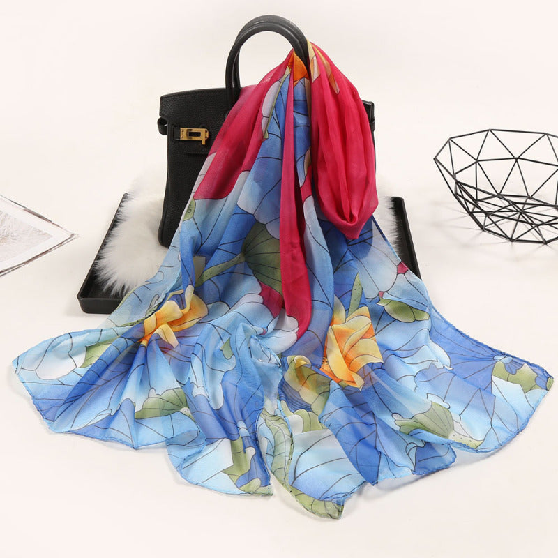 Esta versátil bufanda combina belleza y funcionalidad, convirtiéndola en un accesorio imprescindible para las mujeres a la moda. Su exquisito estampado floral y su suave gasa garantizan una sensación tan agradable como atractiva, ya sea como chal o pañuelo. Elige entre una gama de impresionantes colores para combinar con tu estilo único.