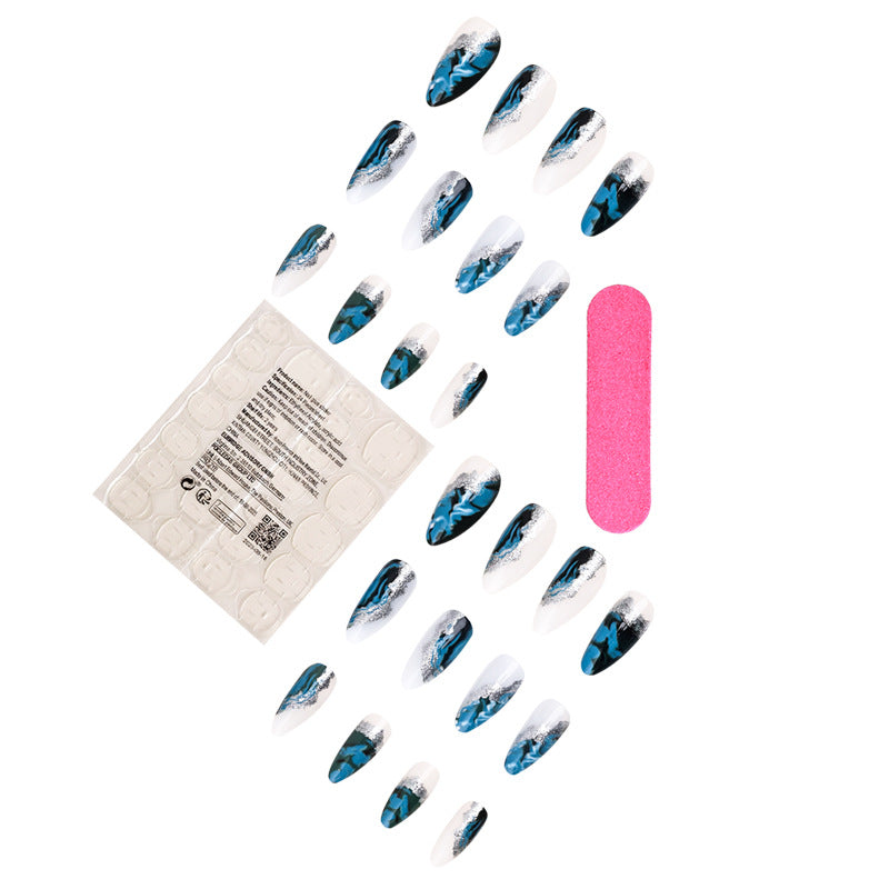 Arte de uñas con polvo de purpurina azul de moda