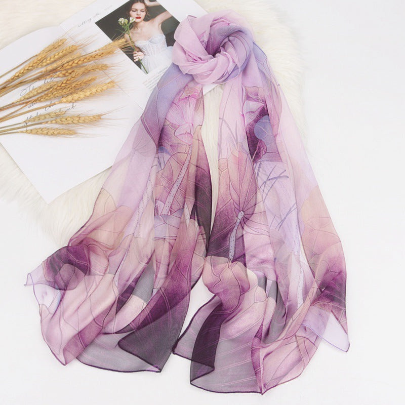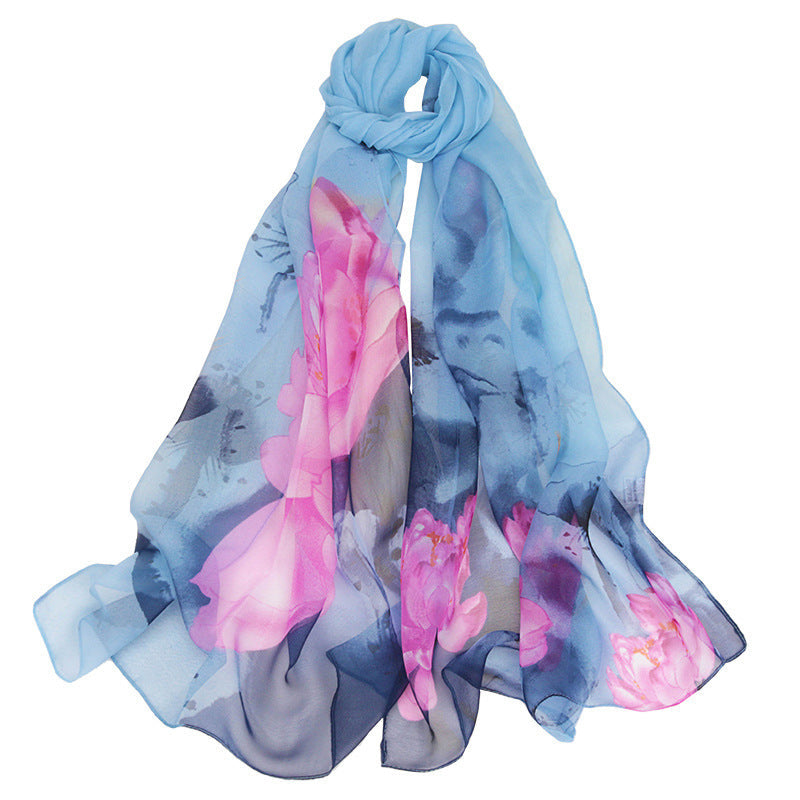 Bufanda elegante de gasa con estampado de flor de loto para mujer