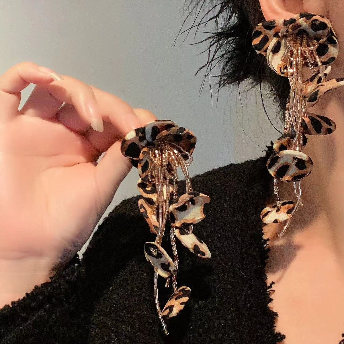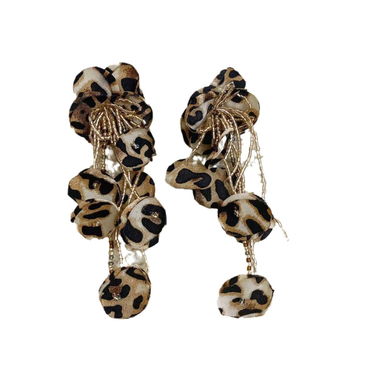 Pendientes largos con borlas florales y estampados de leopardo exagerados