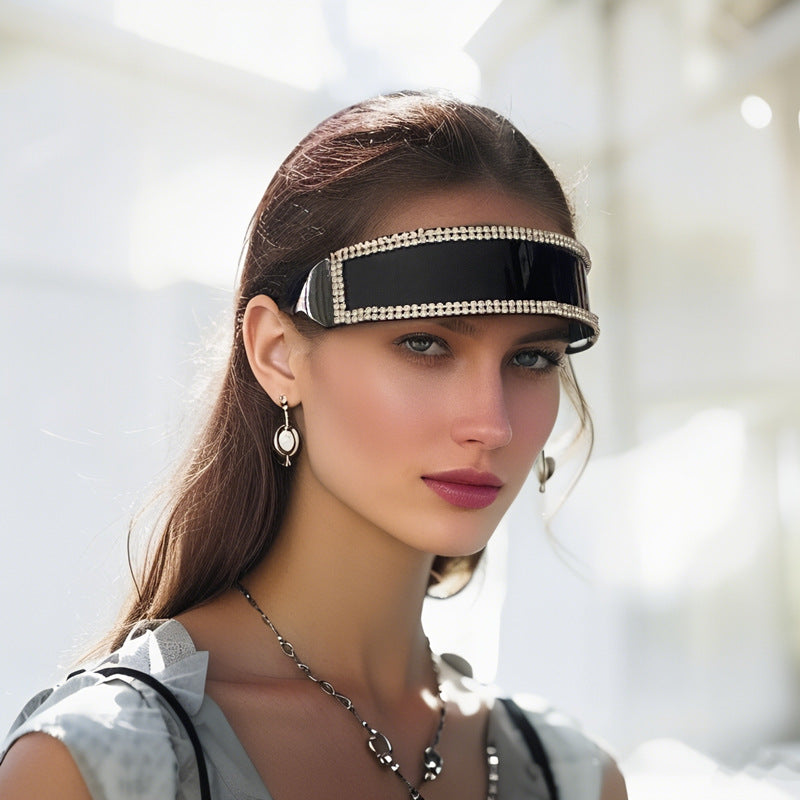 Declaración de moda: estas gafas de sol combinan una estética futurista con brillantes detalles de diamantes de imitación, lo que las convierte en un accesorio destacado para cualquier atuendo.