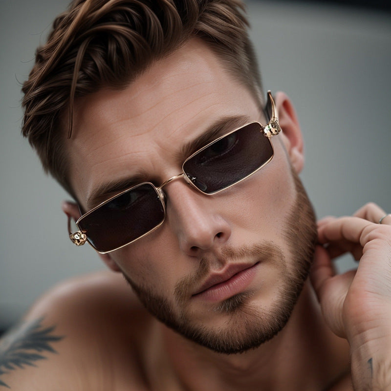 Estas gafas de sol presentan una montura metálica cuadrada de inspiración retro, combinada con lentes con un toque literario y artístico. Disponibles en varios colores, ofrecen un accesorio elegante, ligero y duradero para el día a día.