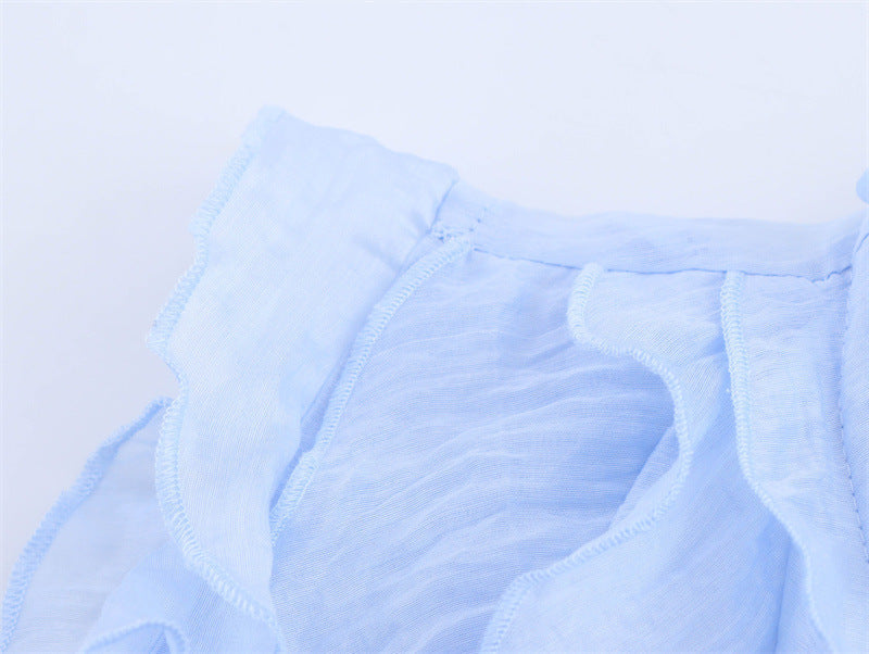 Fashion Solid Color Sleeveless Ruffl Layer Blouse