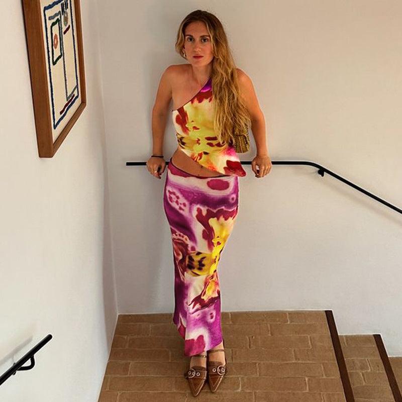 Esta impresionante falda larga con estampado floral es perfecta tanto para ocasiones sociales como para salidas informales. Hecha con una mezcla de poliéster y elastano, ofrece un ajuste cómodo y un toque elegante. El singular contraste de color realza su estampado floral, convirtiéndola en una prenda destacada en cualquier armario.
