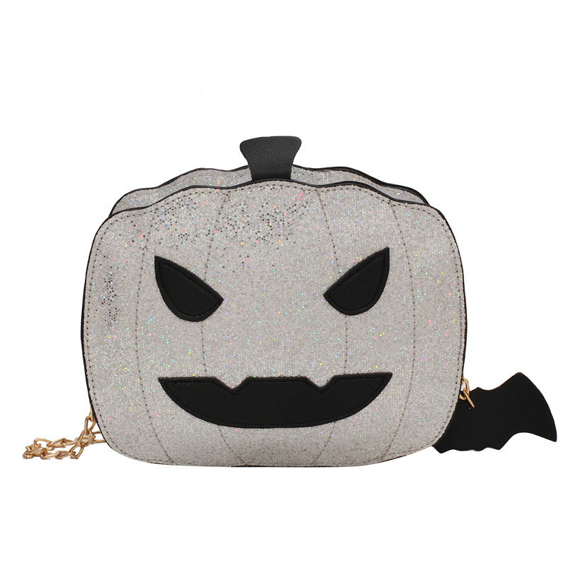 Bolso bandolera de un solo hombro con cadena y diseño de calabaza y lentejuelas de Halloween
