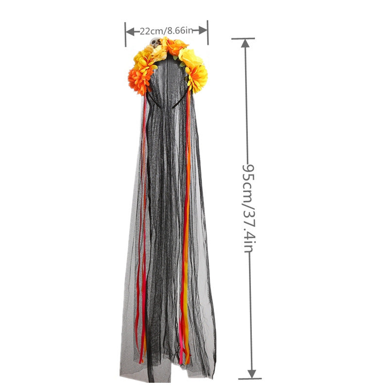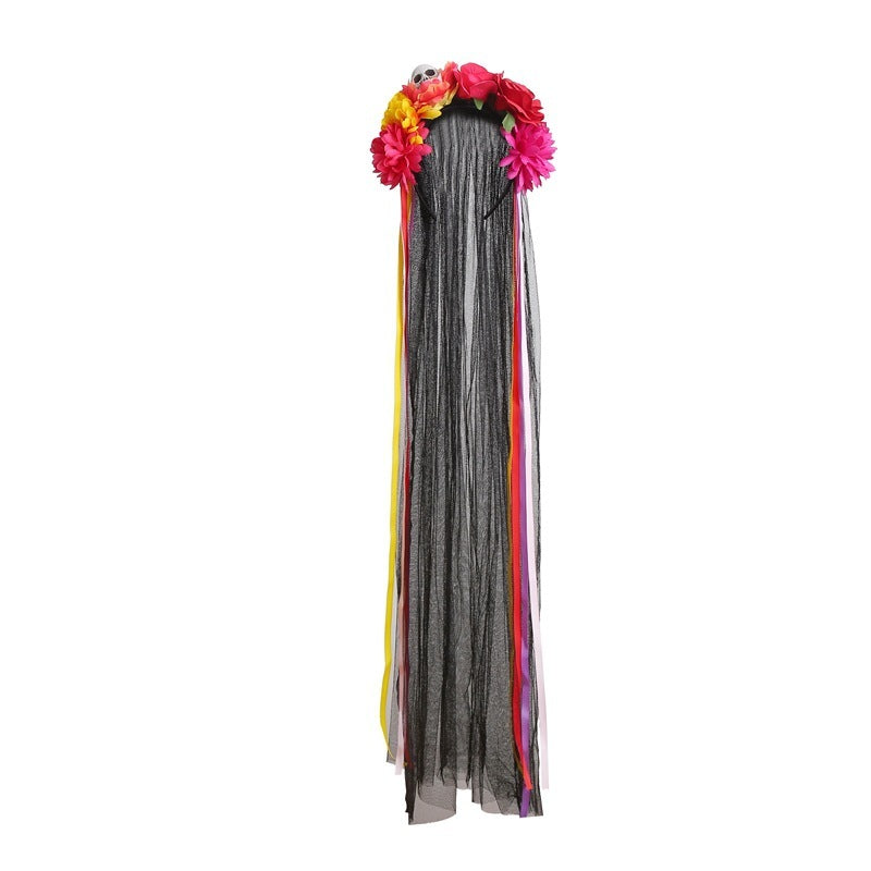 Material y diseño: Elaborada con malla y tela de alta calidad, la diadema presenta un detallado motivo de calavera entrelazado con flores artificiales. Su estilo retro Lolita le da un toque vintage a cualquier atuendo de Halloween.
