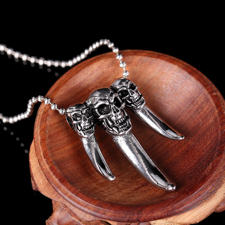Collar unisex con colgante de diente de lobo y calavera punk para Halloween