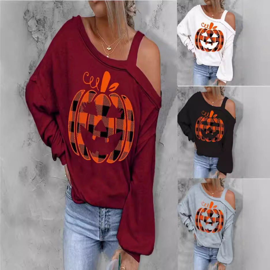 Sudadera con hombros descubiertos y efecto 3D para Halloween para mujer