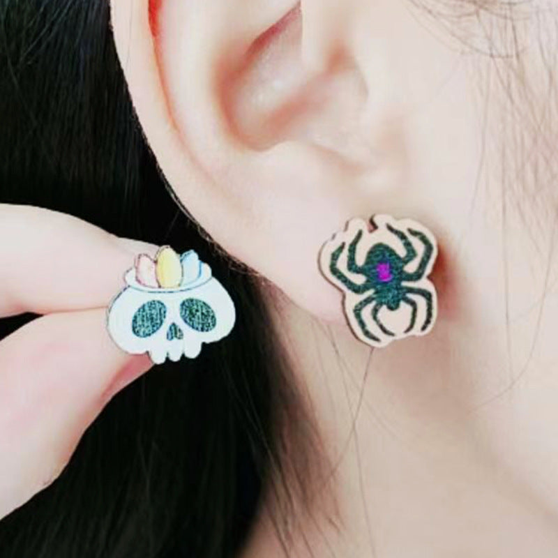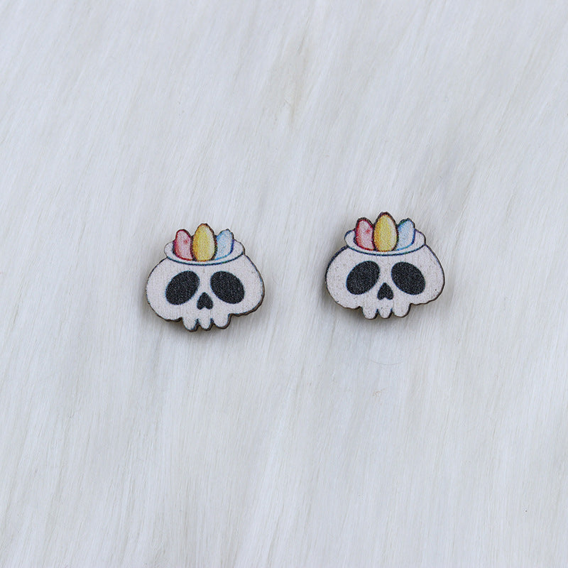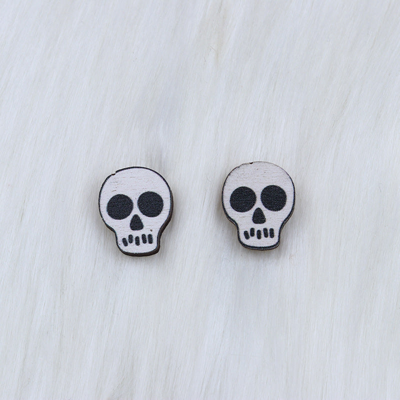 Pendientes de calavera con estampado de madera para Halloween para mujer