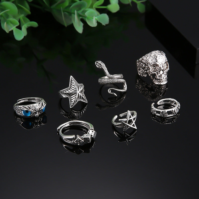 Anillos midi de Halloween para mujer, estilo vintage, hueco, con forma de estrella, serpiente, calavera, búho, rosa y animal.