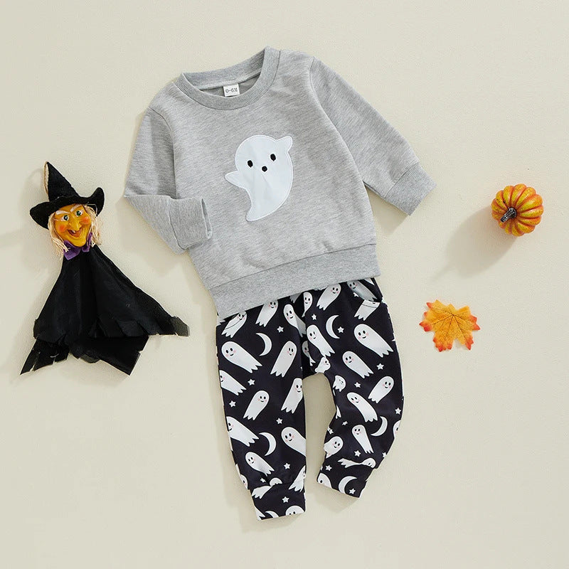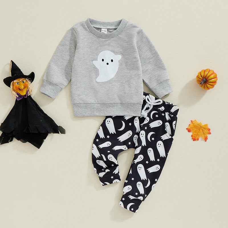 Este conjunto casual de dos piezas para niños combina comodidad y diversión con un estampado de calabaza de Halloween. Confeccionado en algodón transpirable, presenta mangas largas y cierre de cremallera. Ideal para niños de 6 meses a 3 años, disponible en elegantes colores negro y gris.