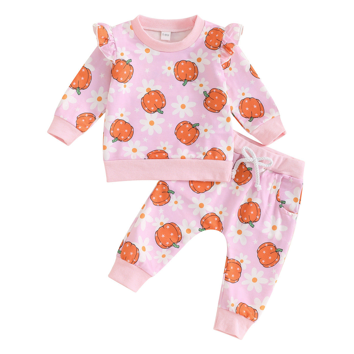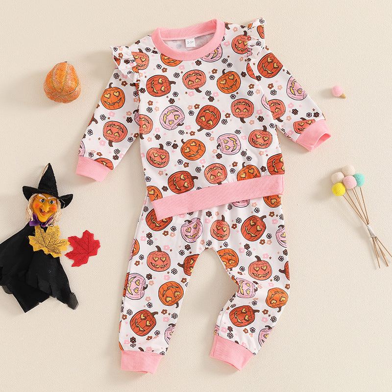 Conjunto de algodón con estampado de calabaza de Halloween para niñas y bebés
