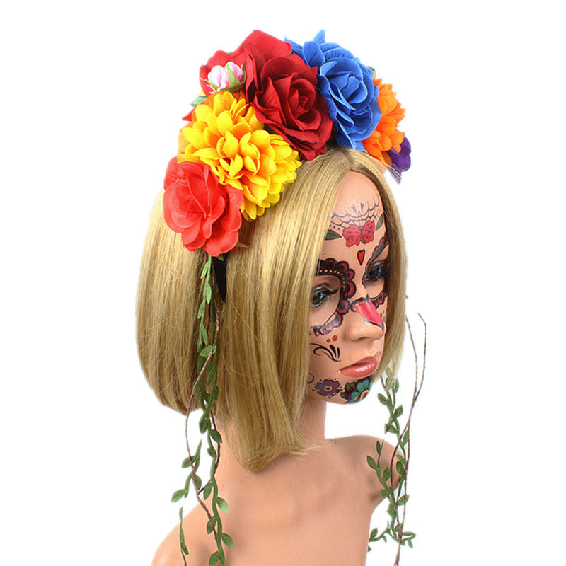 Esta vibrante diadema floral presenta rosas de tela multicolor, lo que la convierte en un accesorio encantador para fiestas de Halloween. Su ajuste cómodo y su diseño llamativo realzan cualquier atuendo festivo, añadiendo un toque de elegancia y diversión a tu look.