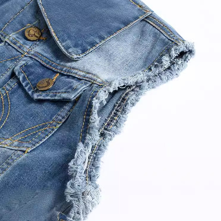 Este chaleco vaquero ajustado de talla grande está diseñado para crear una silueta favorecedora y ofrecer la comodidad de la mezclilla ligera. Perfecto para cualquier ocasión, es una prenda esencial para crear elegantes looks en capas.