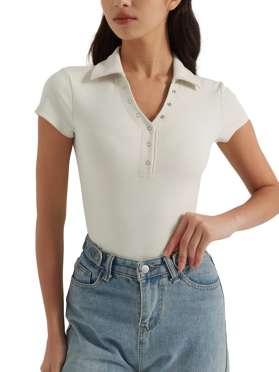 Body ajustado de yoga y fitness de secado rápido con cuello polo