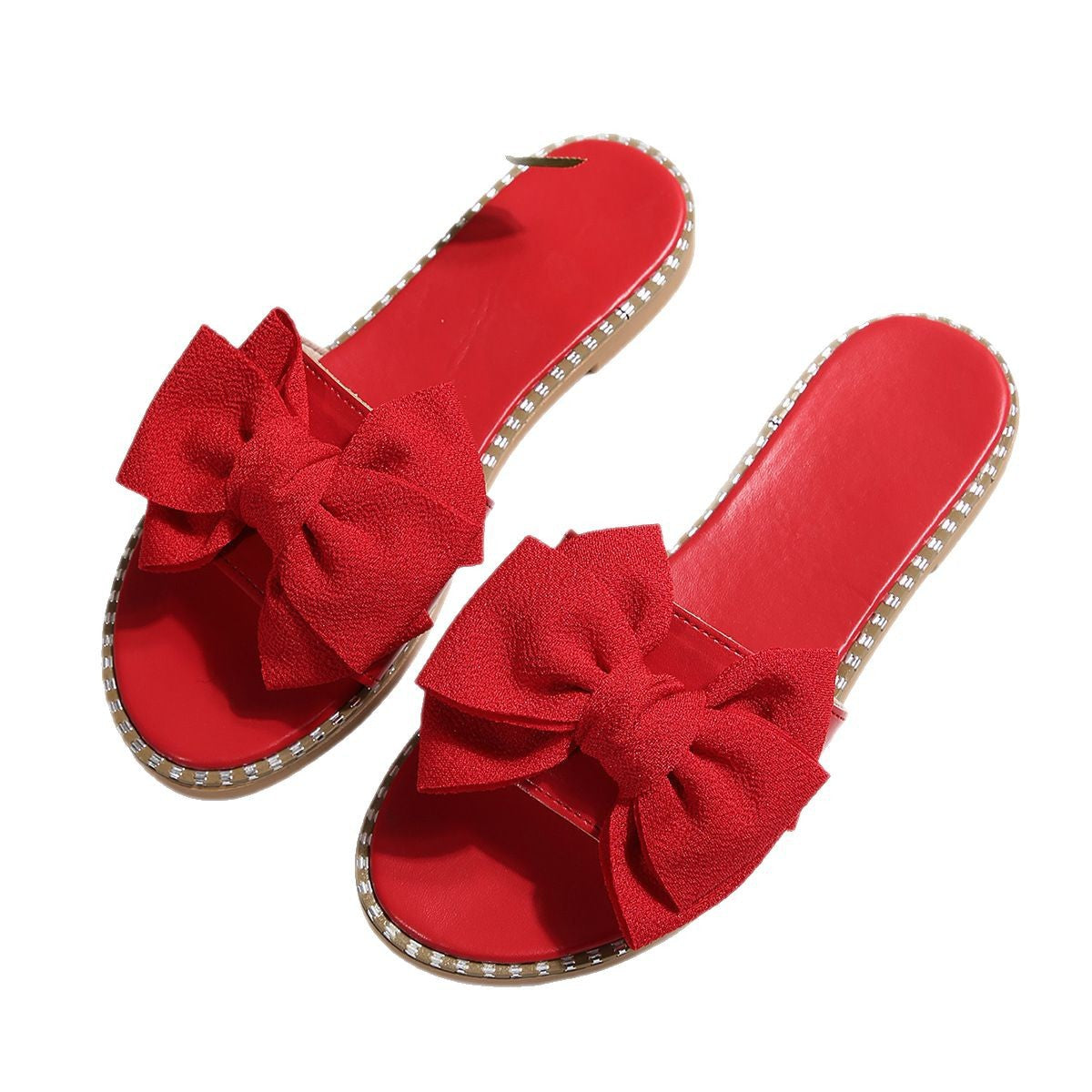 Pantuflas con lazo rojo para mujer - Zapatos planos informales con PU artificial