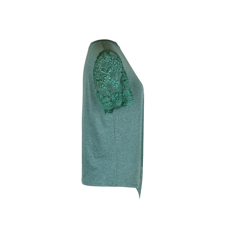 Short-Sleeve Round-Neck Solid Color Blouse