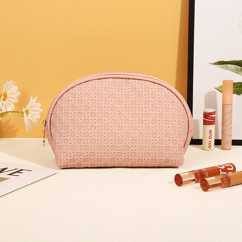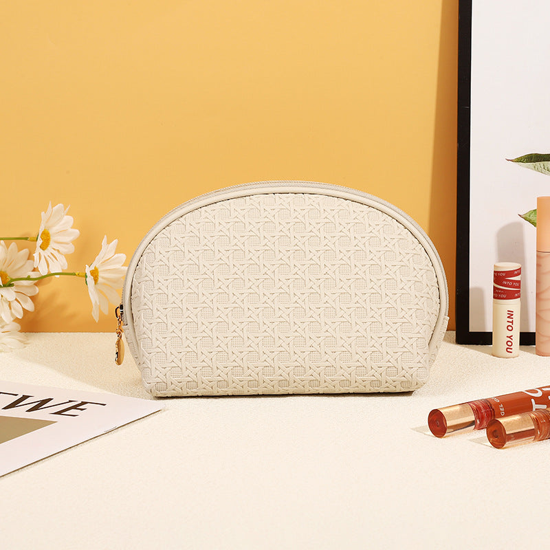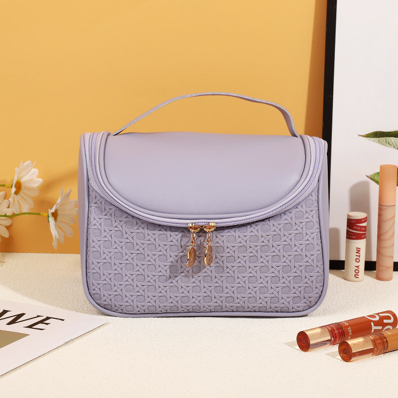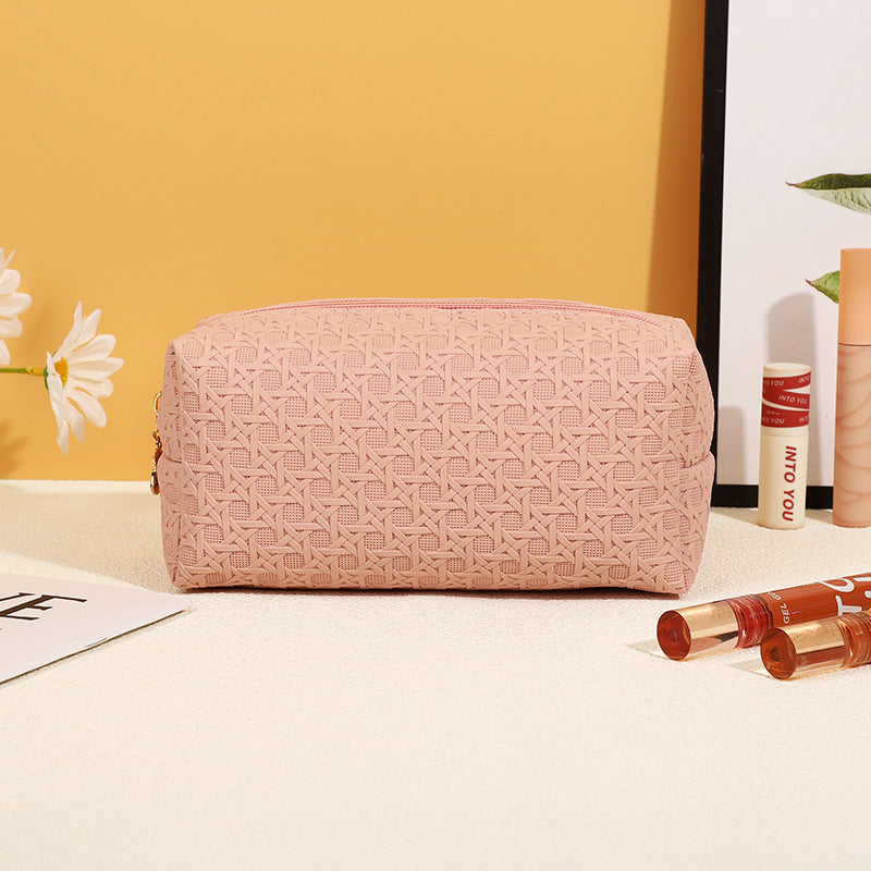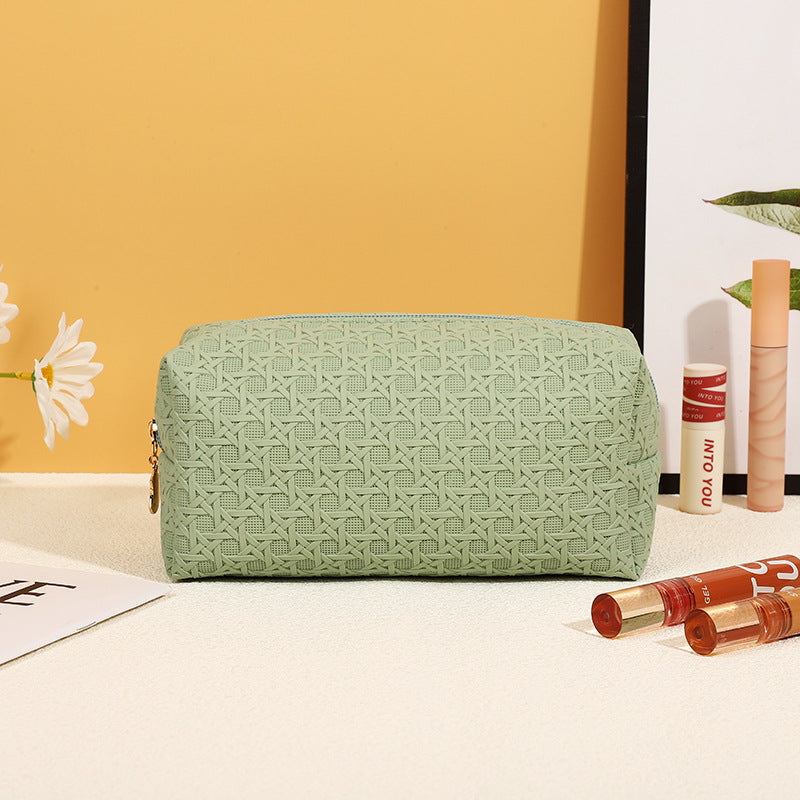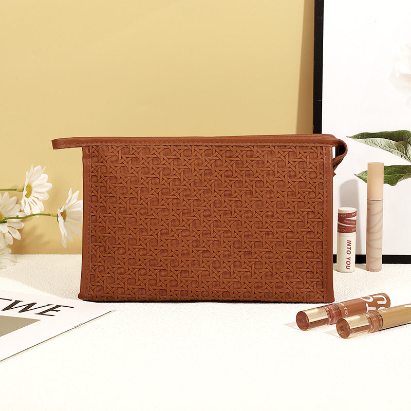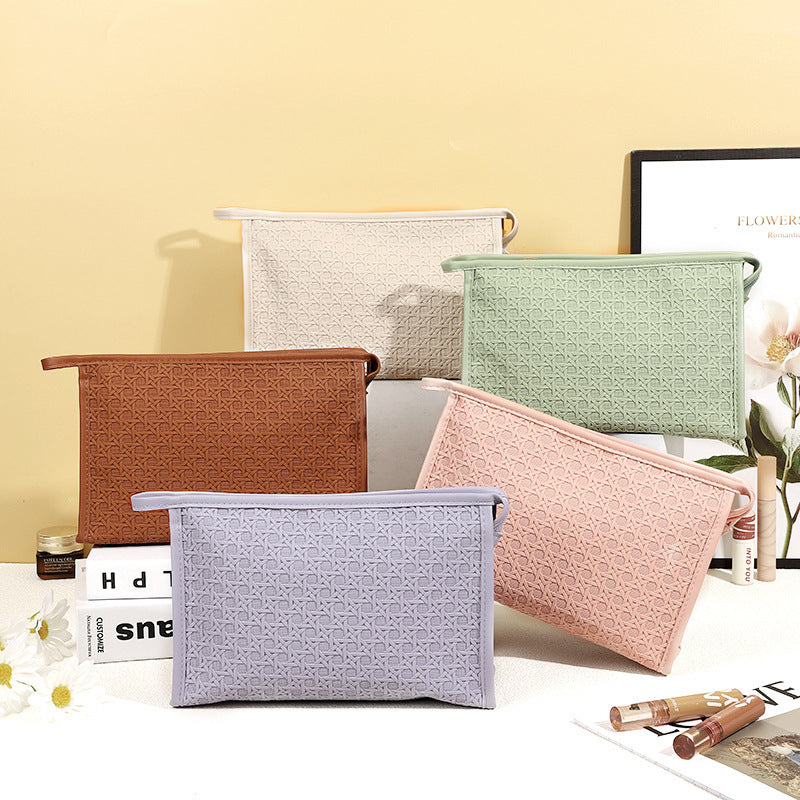 Bolsa de cosméticos sencilla de cuero de color sólido