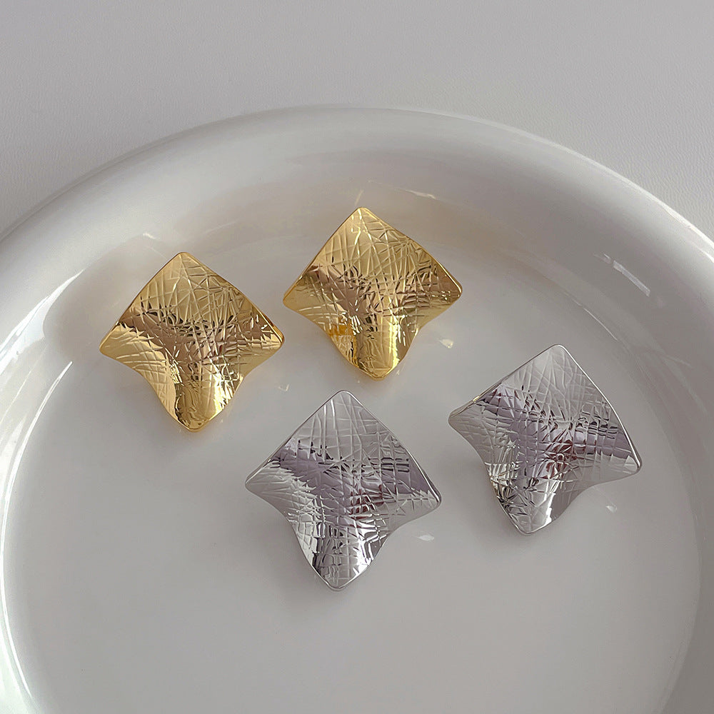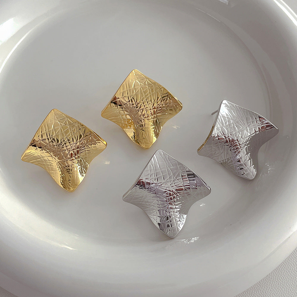 Simple Square Fold Cool Stud Earrings