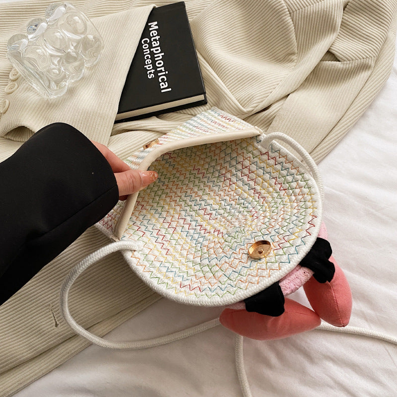Bolso bandolera creativo de paja con carita sonriente de verano