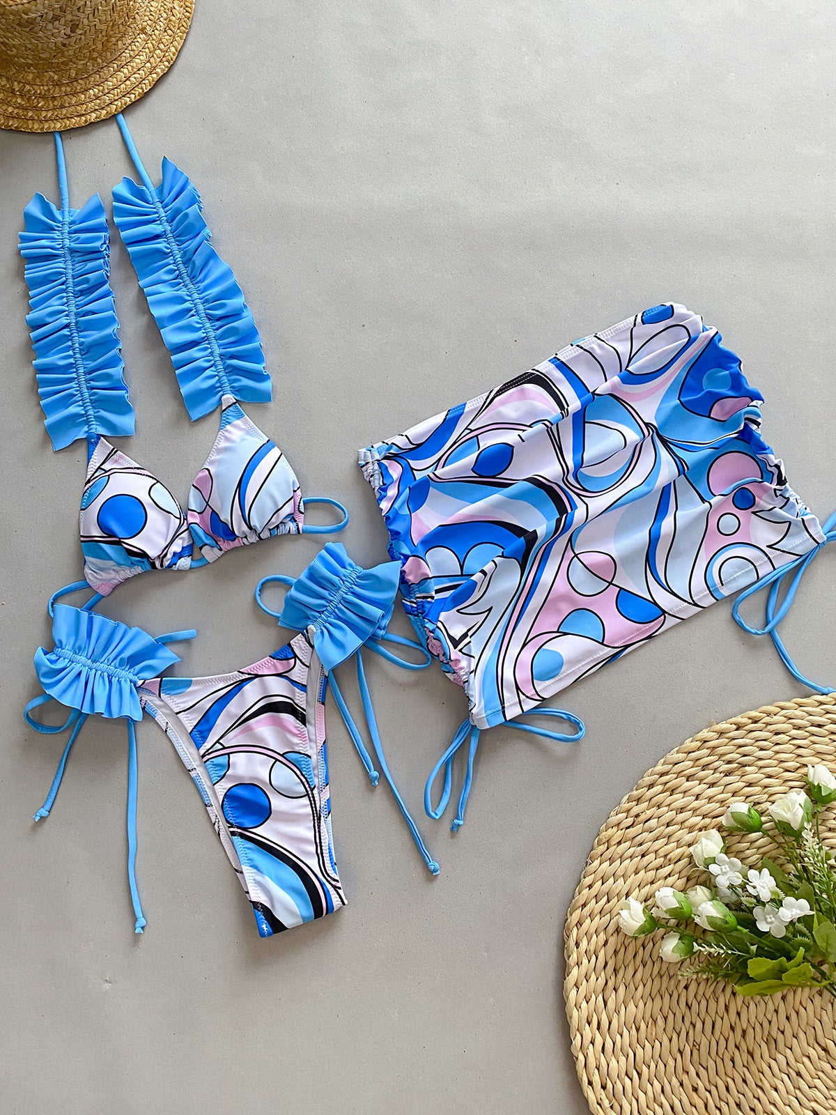 Conjunto de tres piezas para mujer, traje de baño con volantes para vacaciones de verano