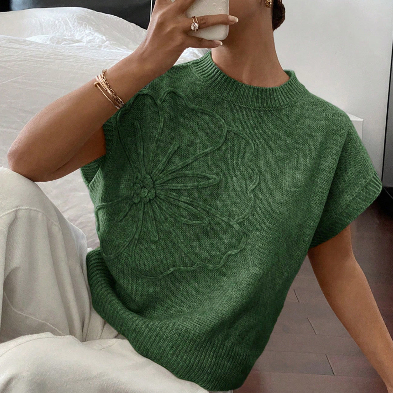 Trendy Floral Embroidered Sleeveless Knit Top