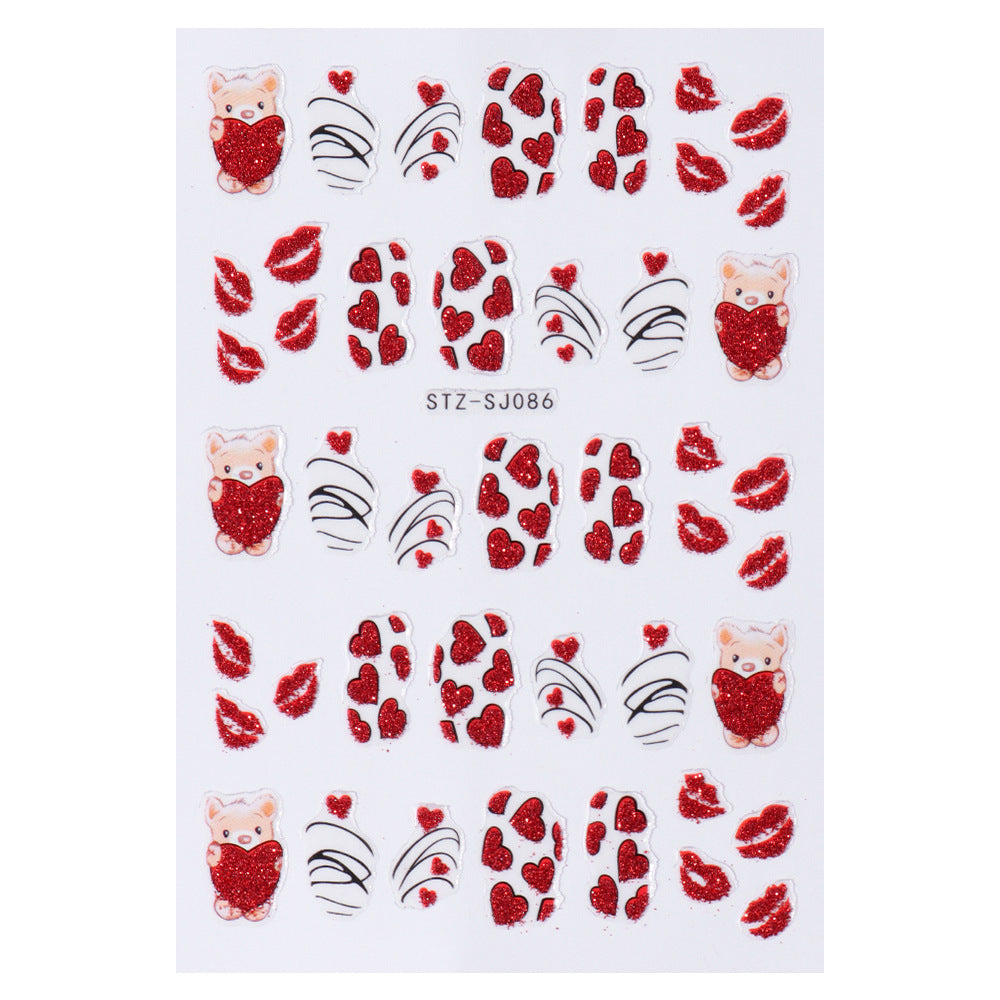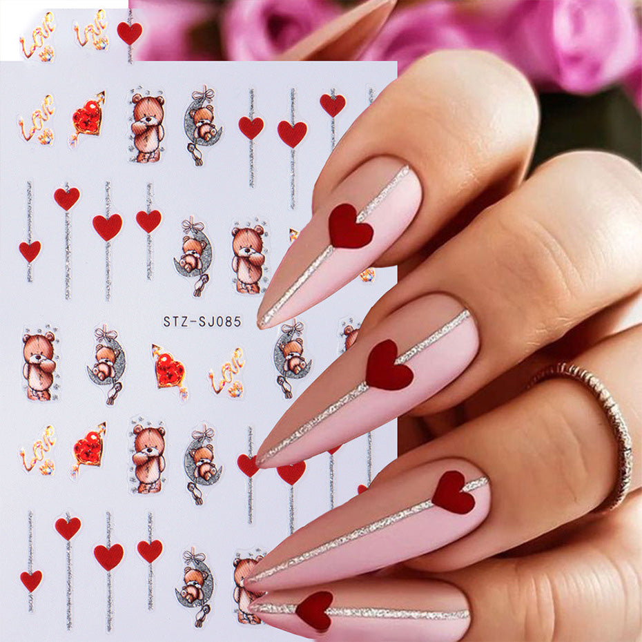 Pegatinas adhesivas para uñas con diseño de oso con purpurina para San Valentín