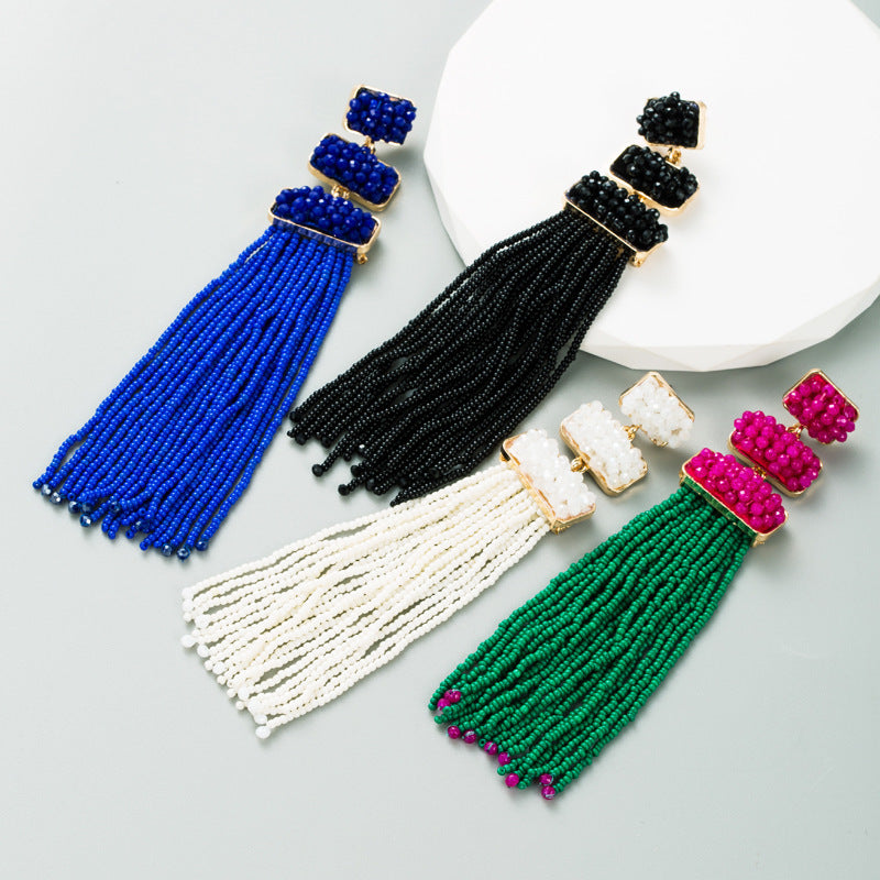 Realza tus accesorios con nuestros pendientes largos de cuentas estilo bohemio para mujer. Estos impresionantes pendientes presentan un diseño único de borla que captura la esencia de la joyería bohemia y añade un toque de personalidad a cualquier look. Disponibles en una variedad de vibrantes colores, son perfectos tanto para ocasiones informales como formales.
