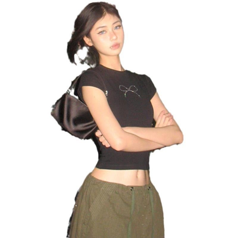 Design & Style: The t-shirt features a classic round crewneck collar and short sleeves with a regular fit. The slim version has a length between 40cm and 50cm, making it ideal for a chic, commuter look. Bowknot patterns add a playful and feminine touch.
