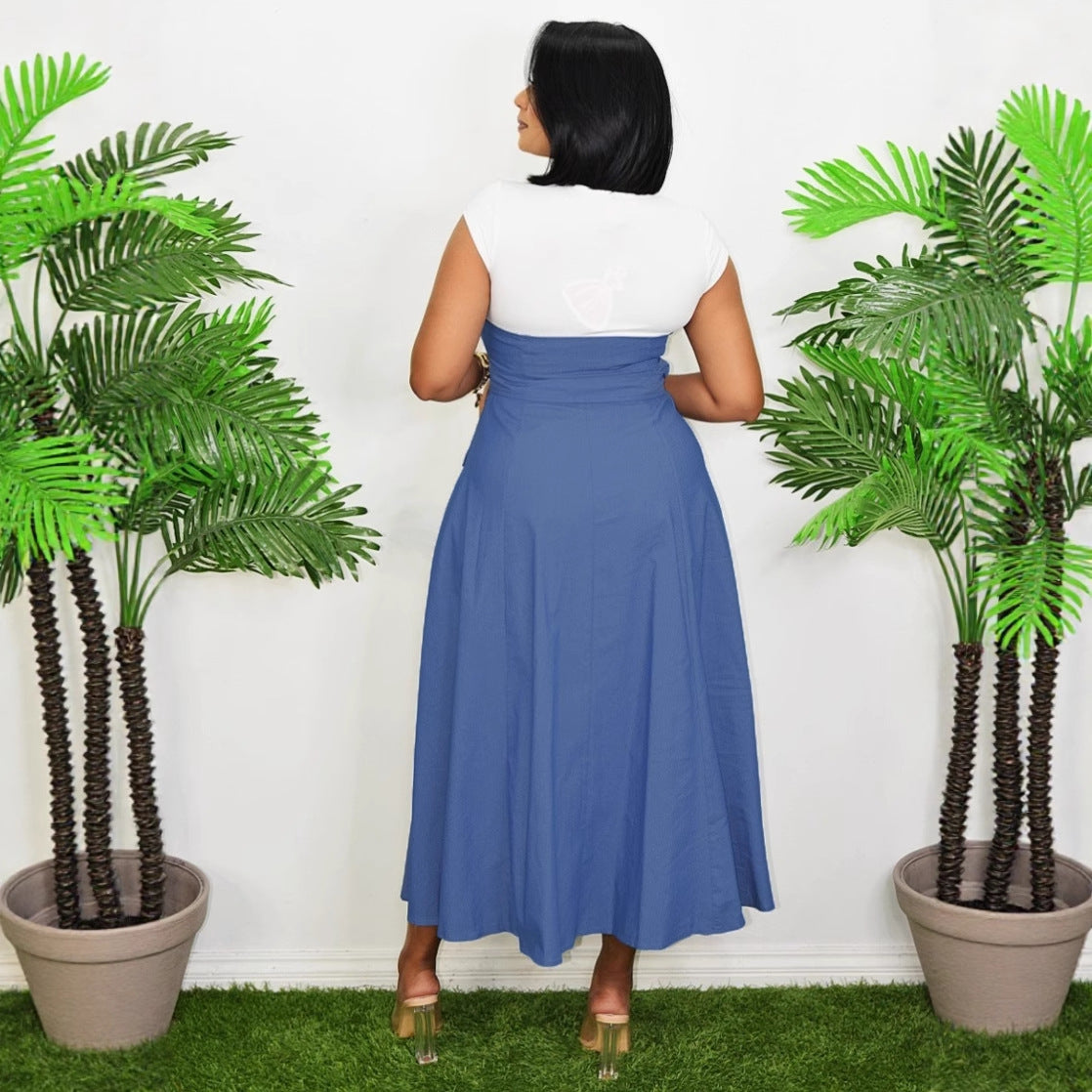 Women Casual Elegant Denim Stitching Color Contrast Dress