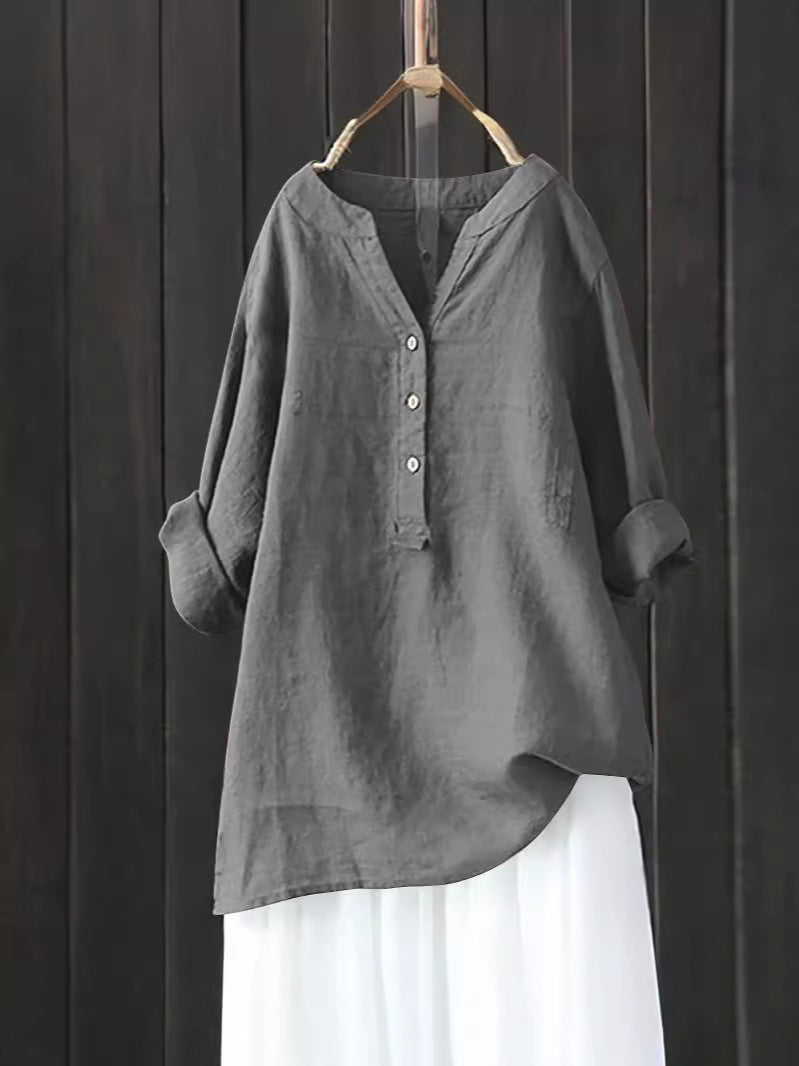 Blusas casuales holgadas de lino y algodón de color liso para mujer