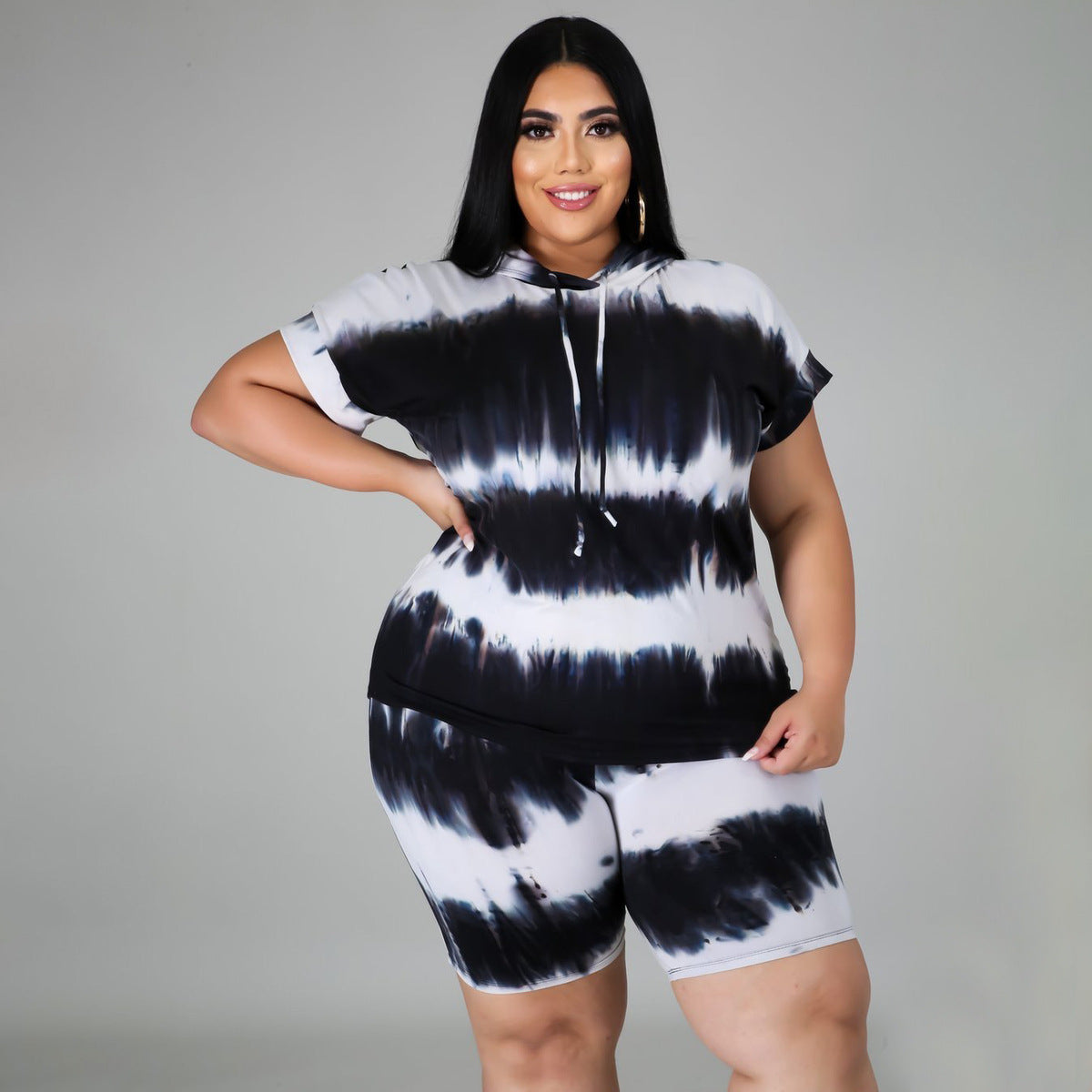 Women Casual Tie-Dye Shorts Two-Piece Set with Hoodies