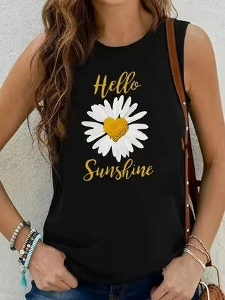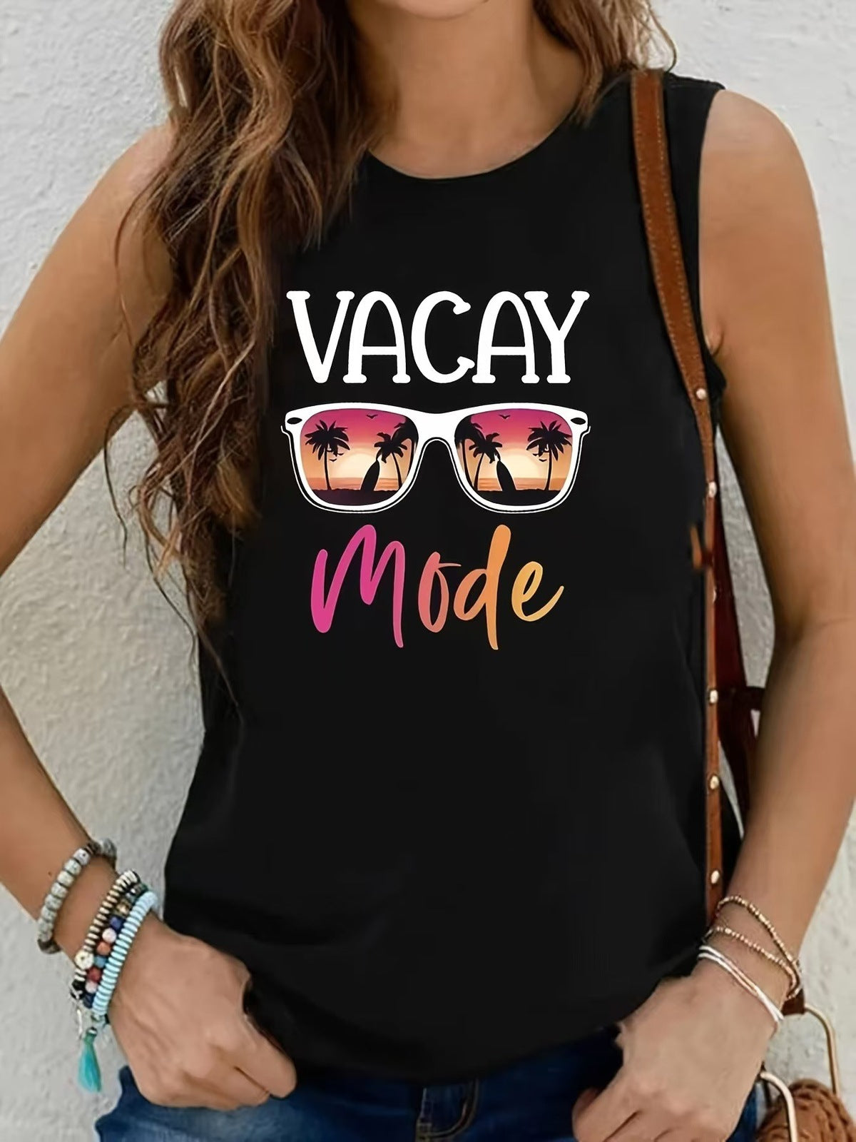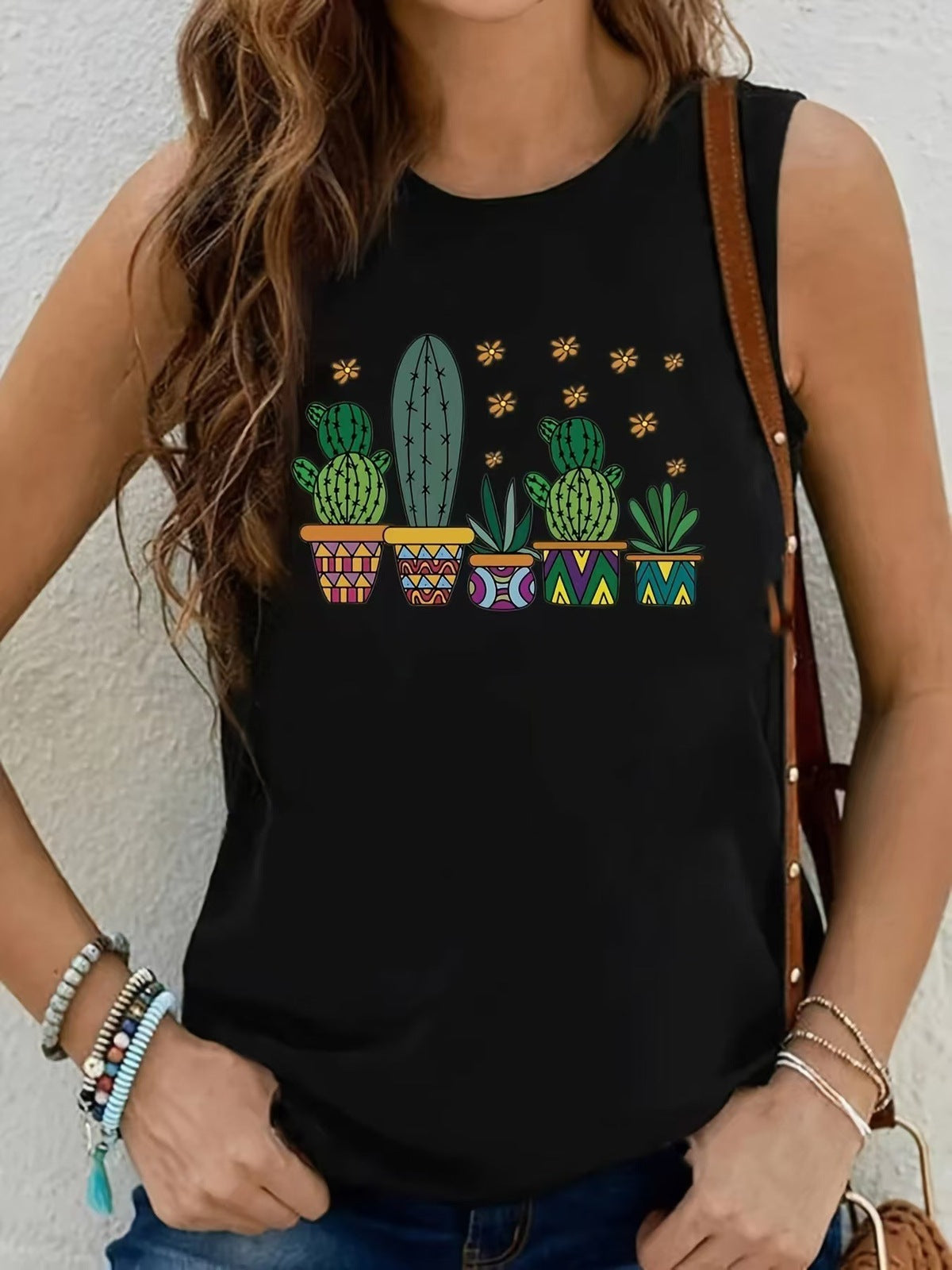 Camiseta sin mangas con cuello redondo y estampado informal a la moda para mujer