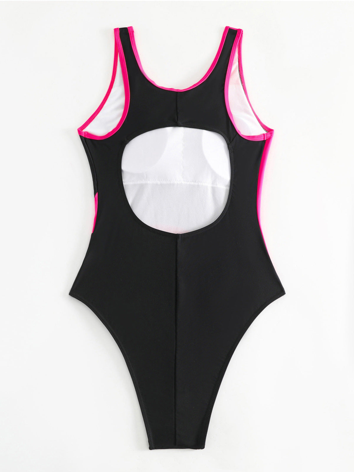Traje de baño de una pieza sin mangas con espalda descubierta y bloques de color a la moda para mujer