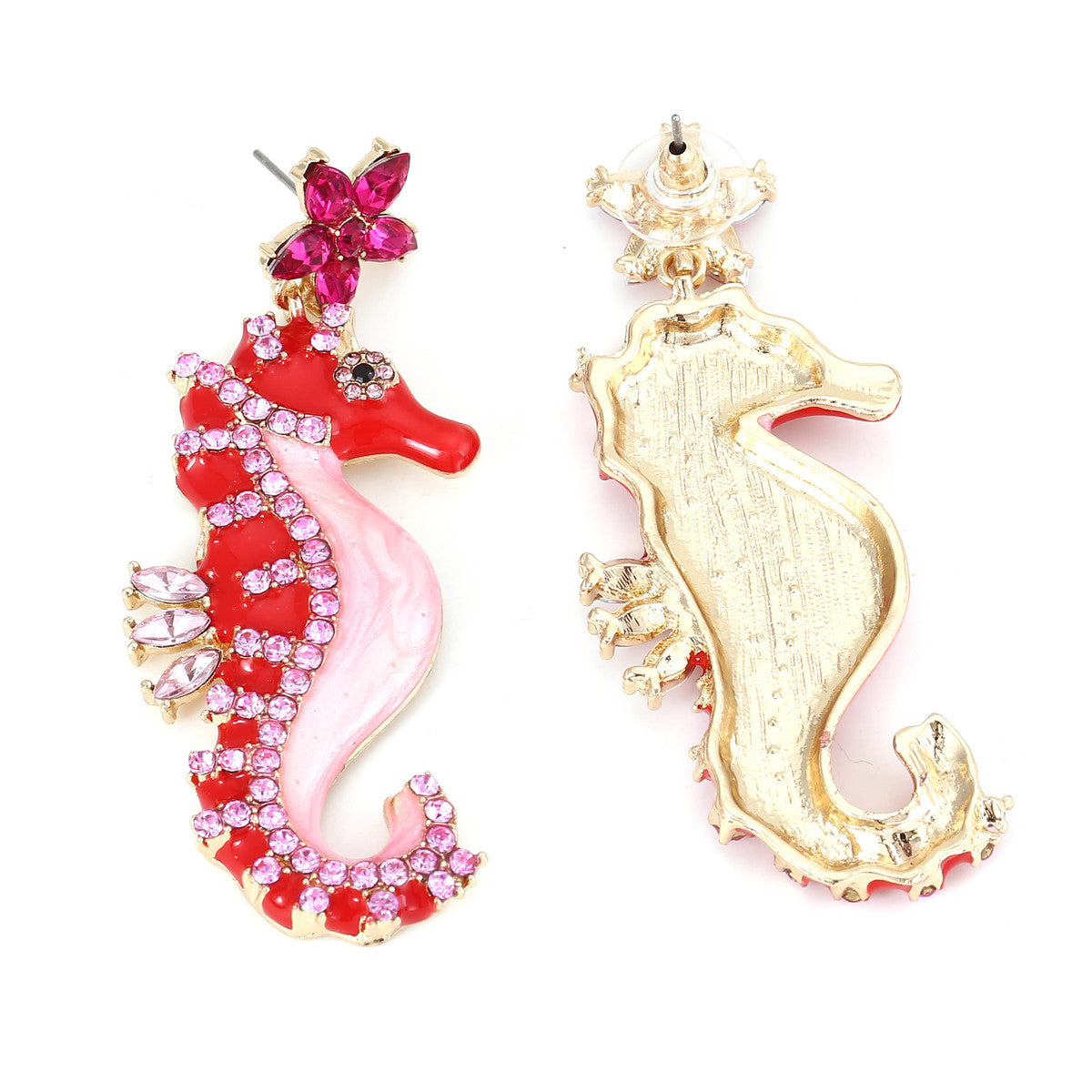 Pendientes de aleación con diamantes de imitación y diseño de hipocampo para mujer